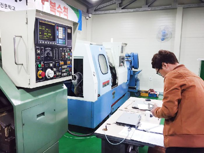 정밀한 부품을 가공하기 위하여 가공 도면을 해독하고 작업계획을 수립하며 적합한 공구를 이용하여 내외경 단차, 홈 및 테이퍼, 나사 등을 선반과 CNC선반을 운용하여 가공한 후, 공작물을 측정하여 필요시 수정하고, 장비를 점검, 정비, 관리하는 등의 직무 수행을 평가하는 종목으로서, 5회차 필기에 합격후,실기시험 준비중인 교육생의 모습입니다.