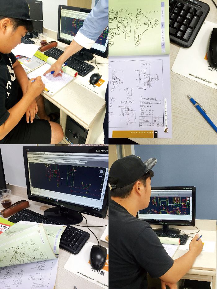 얼마남지않은 전산응용기계제도기능사 실기시험 대비와 여름방학을 맞이하여 캐드수업을 듣는 중,고생학생들의 모습.